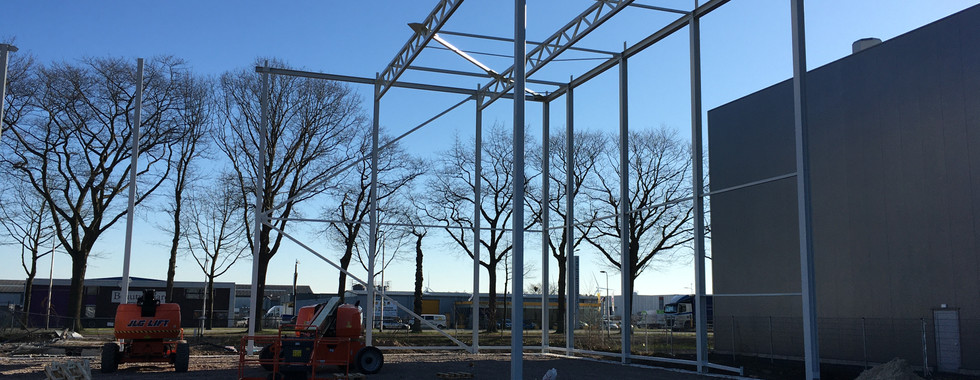De distributie hal op bedrijventerrein Kranenberg begint ondertussen aardig vorm te krijgen. We zijn in de opbouwfase. Wegens vele verstoringen in de ondergrond was het een hele uitdaging om de juiste paal te selecteren voor de hoofddraagconstructie. Ondertussen gaat de bouw gestaag verder en is het pand bijna onderdaks.